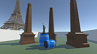 Tutorial 1 I managed to successfully import my barrel and cenotaph models from the first self-study into Unity! I also imported Eiffel Tower and Statue of Liberty models I found online, and added a si...